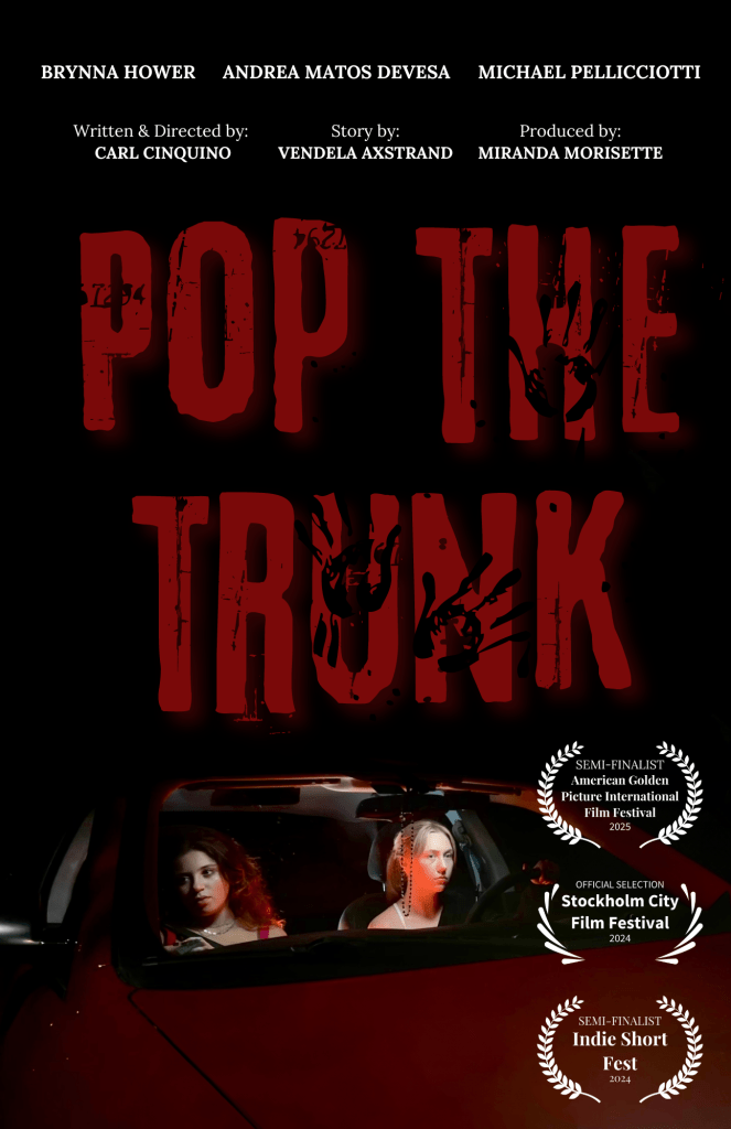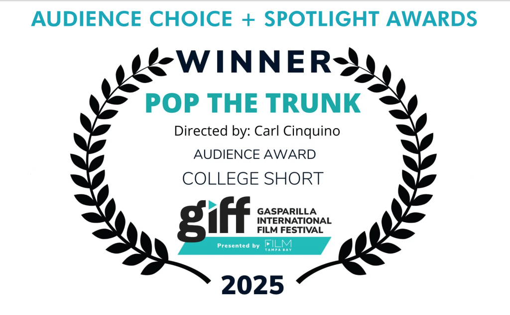 “Pop The Trunk” was awarded the Audience Award in the College Shorts category at the 2025 Gasparilla International Film Festival. It has also been selected by the 2024 Stockholm City Film Festival and was a semi-finalist for both the 2025 American Golden Picture International Film Festival and the 2024 Indie Short Fest.